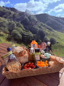 Pre-order one of our curated extras – feast on a beautifully prepared hamper, indulge in a gourmet charcuterie board with wine, or treat yourself to our delicious dinner package featuring locally sourced ingredients that you can cook yourself.