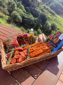Our Dinner Hamper includes a generous selection of seasonal, locally sourced ingredients – perfect for a relaxed BBQ or indoor dining experience.